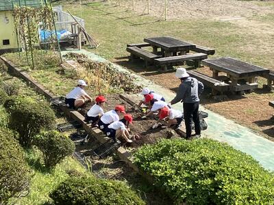 昨日に引き続き、今日は1・2年がさつまいもを収穫しました。